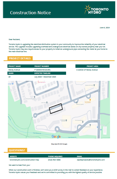 Toronto Hydro is pleased to inform you they will be improving the electricity system in our ward.